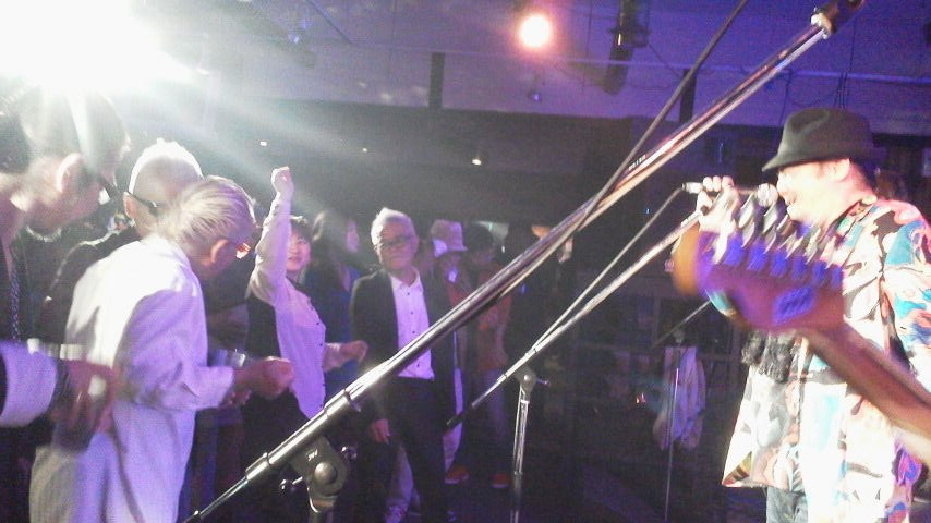 当初予定されていた 22:30の出番までの間、ゆっくり寛いでほしいとの高良さんのイキな計らいで、本番前に地元の絶品料理の数々と泡盛をたらふくご馳になって、すっかり出来上がった播東バンドご一行。